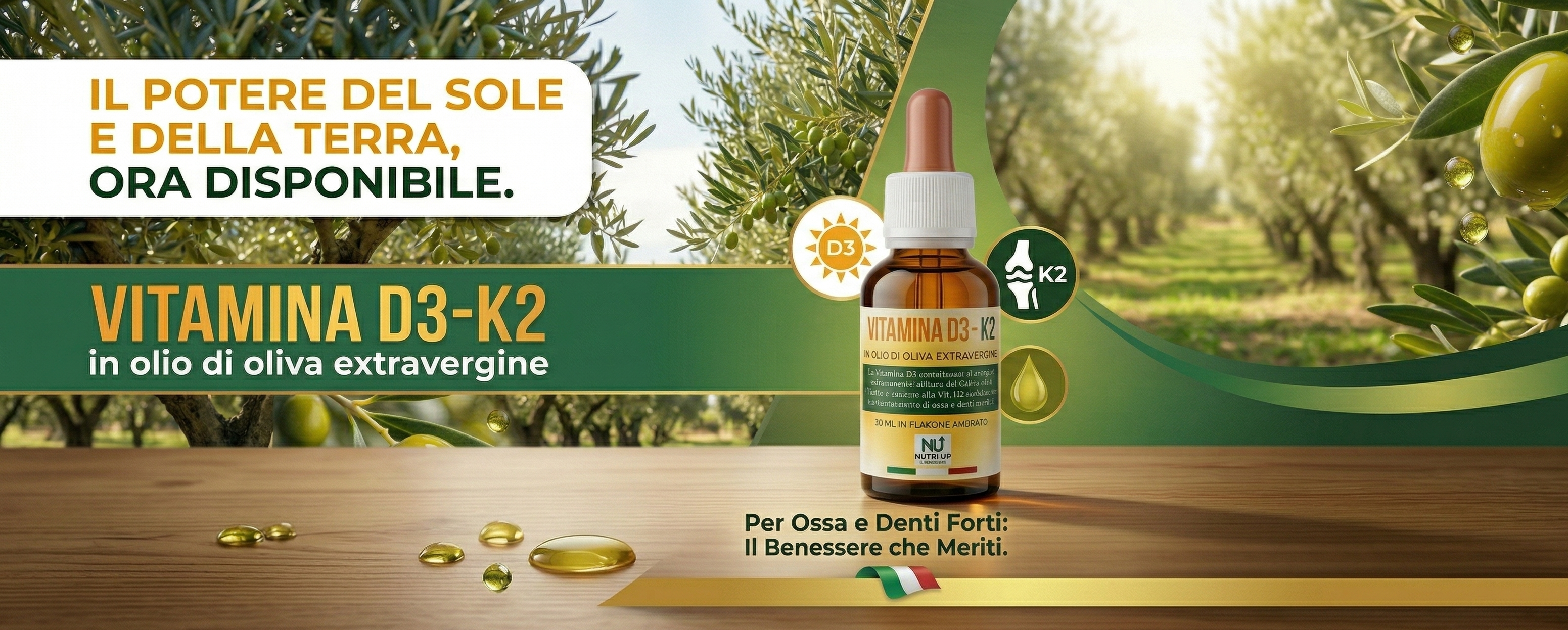 NutriUp Integratore Vitamina D3 e K2 30 ml in Olio Extravergine di Oliva. Aiuta l'Assorbimento del Calcio e il Mantenimento di Ossa e Denti. 5 Mesi di Trattamento, Made in Italy